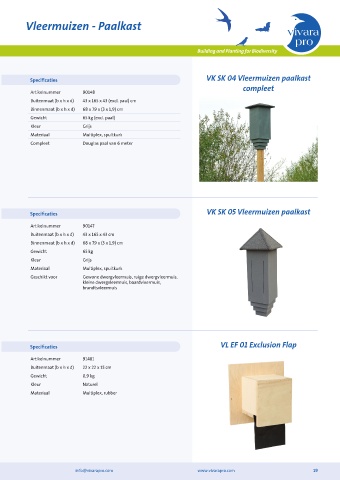 Specificaties VK SK 05 Vleermuizen paalkast