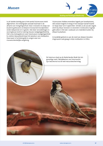 afname van nestgelegenheid. Door renovatie en sloop van en loopt door tot in september. Omdat ze als sociale vogels