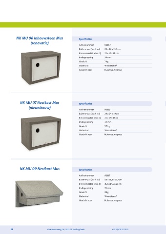 NK MU 09 Nestkast Mus Specificaties