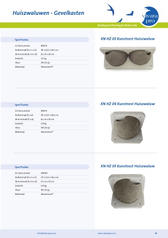 Specificaties KN HZ 03 Kunstnest Huiszwaluw