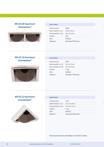 * Deze kunstnesten zijn uitneembaar om schoon te maken.