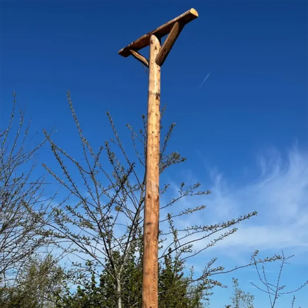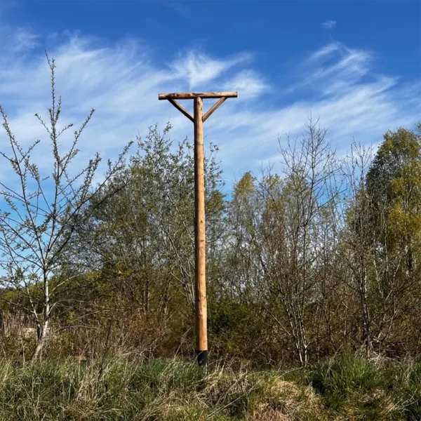 Raptors Perching Post. Birds of prey such as buzzards, kestrels, and owls prefer high perching spots to survey their surroundings and hunt. These raptors perching posts are commonly installed in orchards and at tree nurseries to prevent birds from perching on the tops of young trees, which can cause branch breakage.Additionally, the posts are used along roads and highways to discourage raptors from flying low across traffic, which can lead to collisions with vehicles. By providing elevated perches, birds are encouraged to cross roads from higher vantage points, improving their safety.
