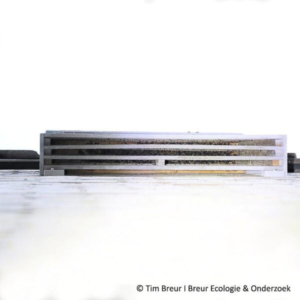 This box is suitable as a maternity box but can also serve as a summer and/or breeding box. In mild winters, it can also function as a shelter. The compartments (including the space between the wall and the box) create different microclimates inside.