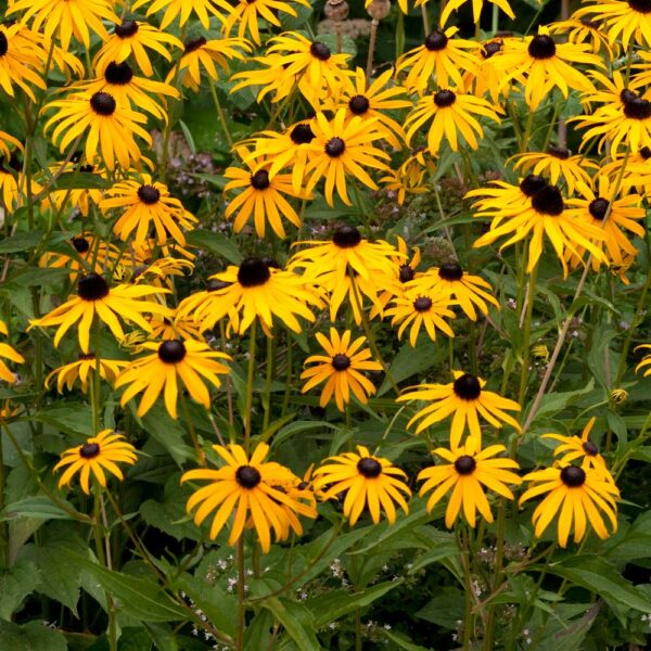 De Gele Zonnehoed (Rudbeckia) is een prachtige, statige plant die met zijn heldergele bloemen vlinders, bijen en andere nuttige insecten aantrekt. Met een hoogte van ongeveer 60 cm geeft hij je tuin een speelse, natuurlijke uitstraling.