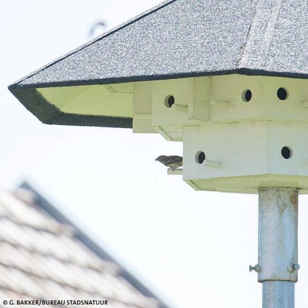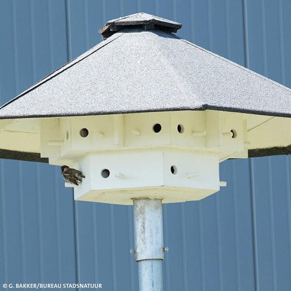 Compleet verkrijgbaar als set inclusief paal; de huismussentil is ook los leverbaar. Kies bij model de gewenste optie om deze aan de offerteaanvraag toe te voegen.