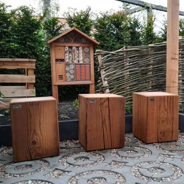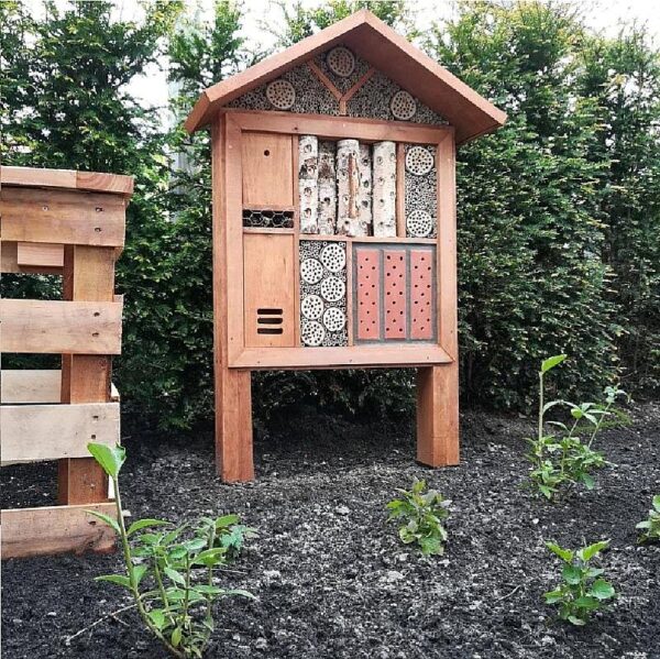 Dit insectenhotel kan op verschillende manieren geplaatst worden, in de grond of op een groen/plat dak.