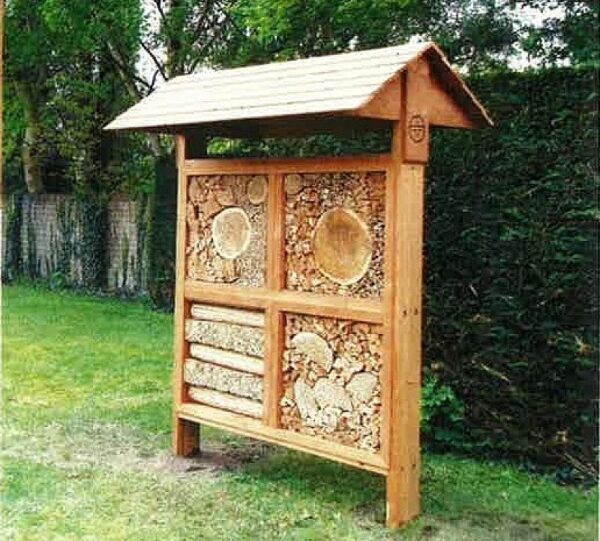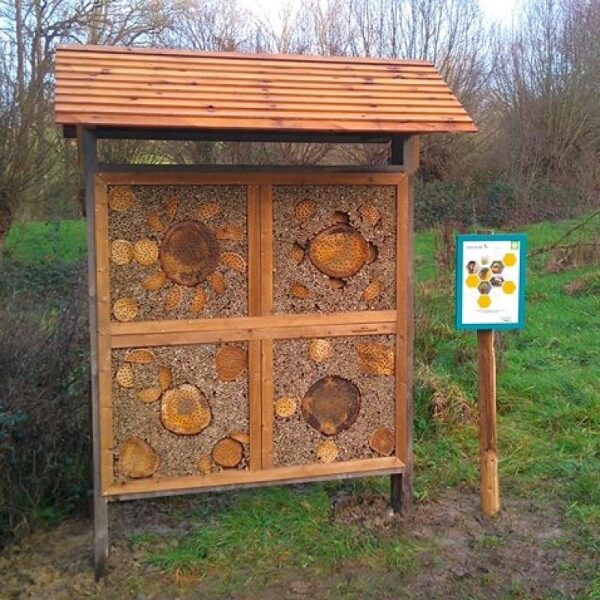 Deze insectenwand biedt nestgelegenheid aan diverse soorten solitaire bijen en andere kleine insecten zoals lieveheersbeestjes. De insectenwand, voorzien van dak, is gemaakt van Douglas hout en is goedgekeurd door bijenexperts. De juiste beplanting in de omgeving van de insectenwand is belangrijk zodat vlinders, solitaire bijen en andere insecten worden aangetrokken. Nectarplanten zijn onmisbaar voor de bijen in het hotel.