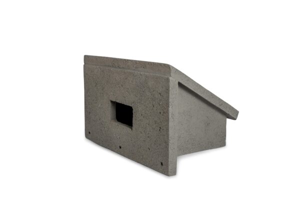 Deze nestkast heeft een invliegopening in de bodem van de kast. Dit is vooral gunstig voor gierzwaluwen die in gebouwen broeden waarbij ze de nestingang ook van onderuit aanvliegen. Kijk voor deze nestkast met invliegopening aan de voorkant hier.
