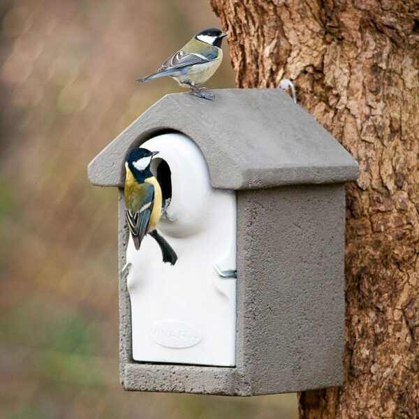 De nestkast kan worden schoongemaakt door de voorzijde van de nestkast te openen. Doe dit direct nadat de jonge vogels zijn uitgevlogen of in de wintermaanden na enkele dagen met vorst.