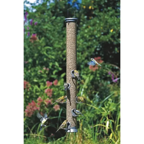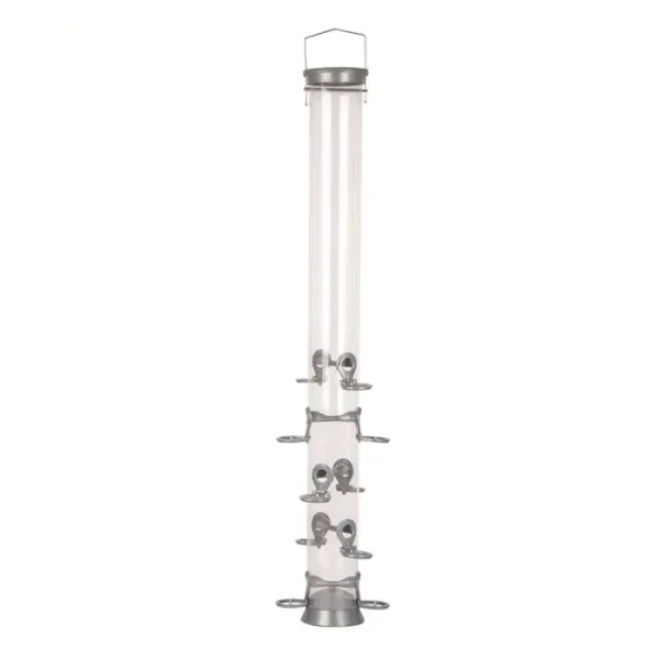 Aan deze extra grote voedersilo kunnen tot wel 10 vogels tegelijkertijd eten. Door de lengte van 93 cm en een diameter van 8,5 cm biedt deze voedersilo een grote capaciteit. Ideaal voor omgevingen met een grote vogelpopulatie.